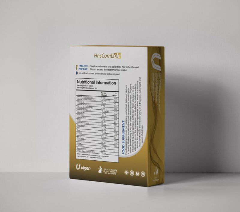 HnsCombole, gives you nourishment where beauty begins – on the inside, with triple active support for skin, hair and nails with biotin, zinc & selenium.